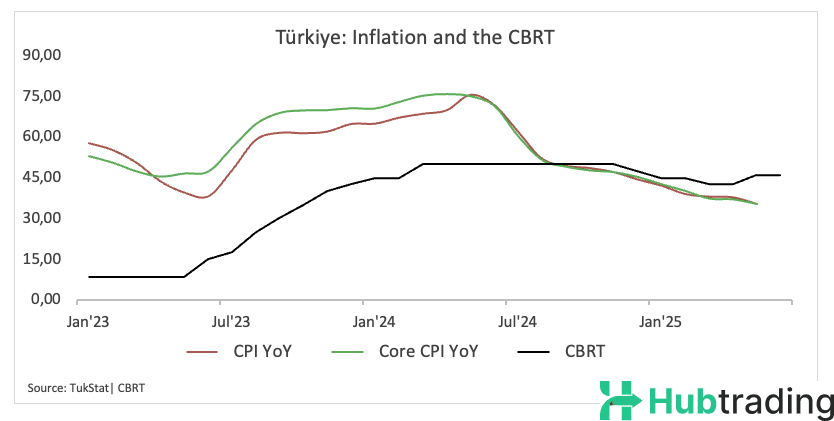 Turkey’s central bank (CBRT) kept its benchmark One-Week Repo Rate unchanged at 46.00% on Thursday, in line with market expectations. However, the decision to maintain the top of the rate corridor—the Overnight Lending Rate—at 49.00% surprised some analysts who had anticipated a more dovish shift. Meanwhile, the Overnight Borrowing Rate remained steady at 44.50%, as forecast.
