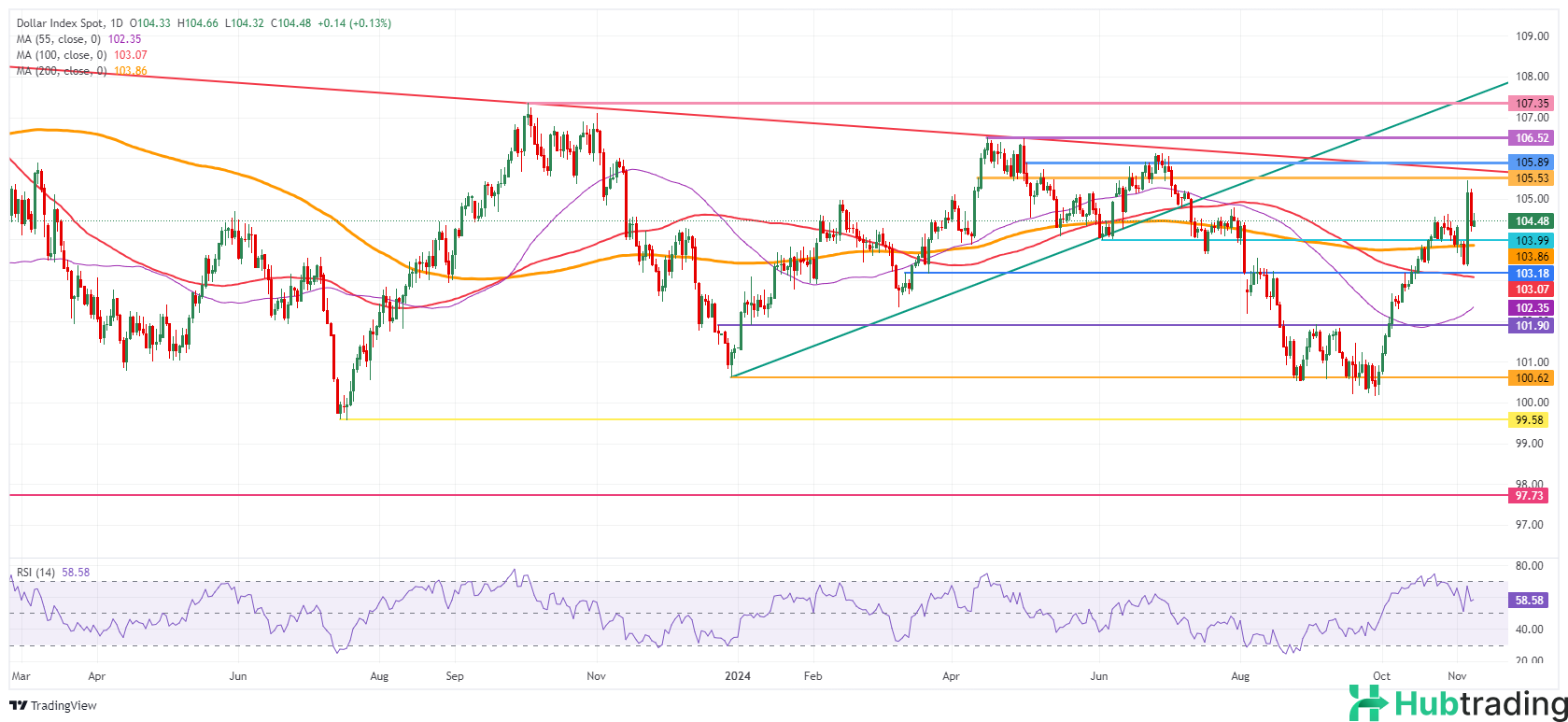 - The ongoing “Trump trade” trend supports U.S. Treasury yields, which hover near a four-month high, strengthening the U.S. dollar to a new year-to-date high.