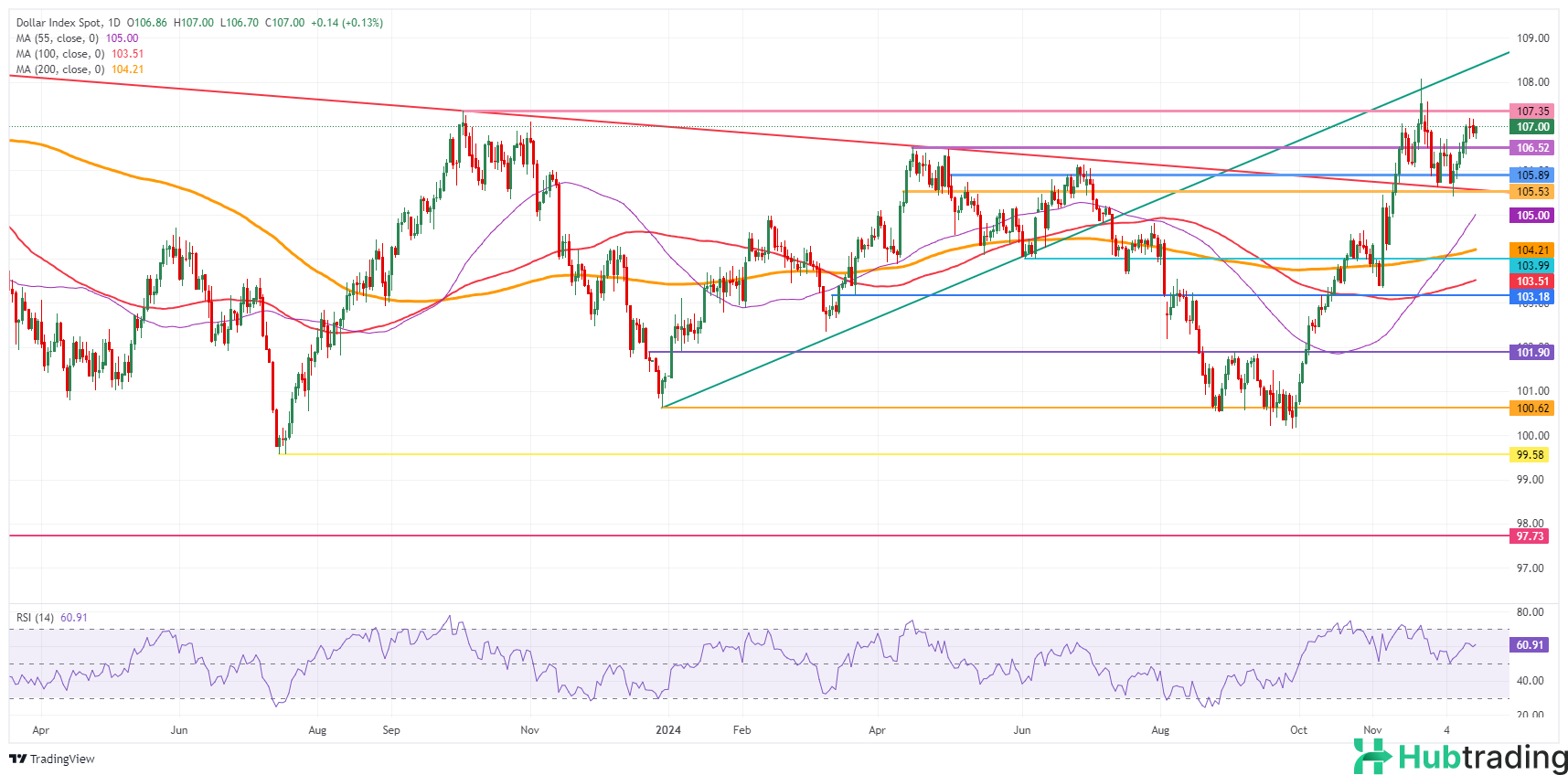 - The US Dollar Index (DXY) is hovering around the 107.00 mark, attempting to climb higher.