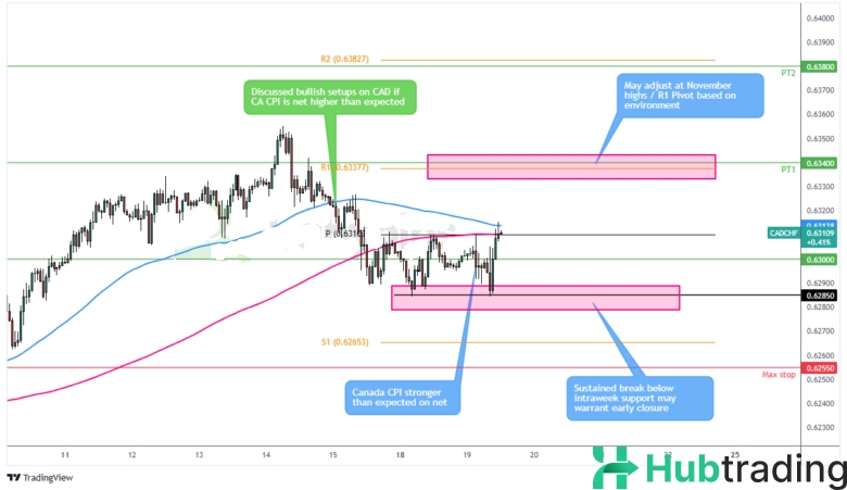 Today's stronger-than-anticipated Canadian CPI data suggests potential short-term upside for CAD/CHF.