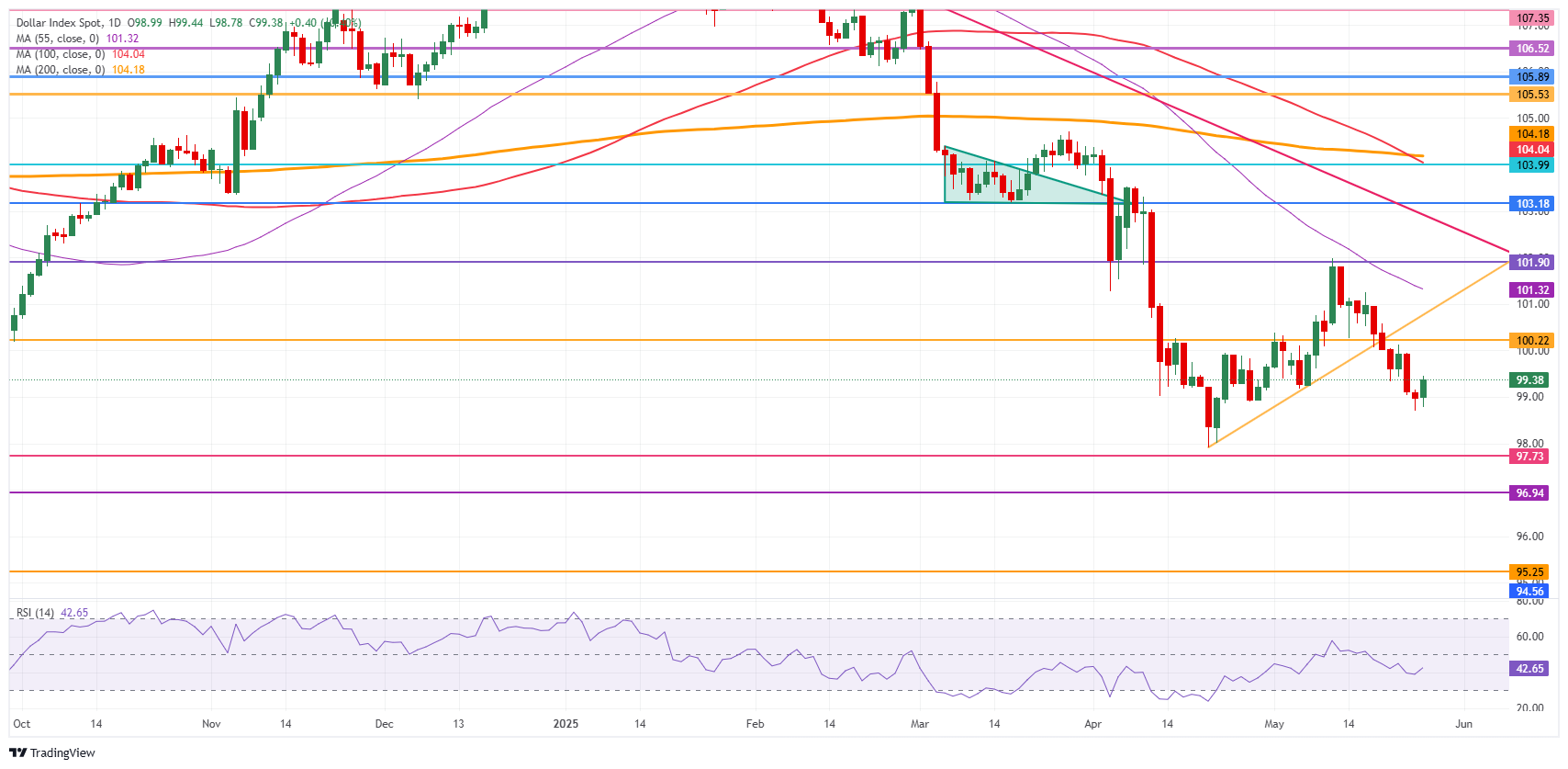 - The US Dollar Index rises above 99.00, aiming for the 100.00 milestone.