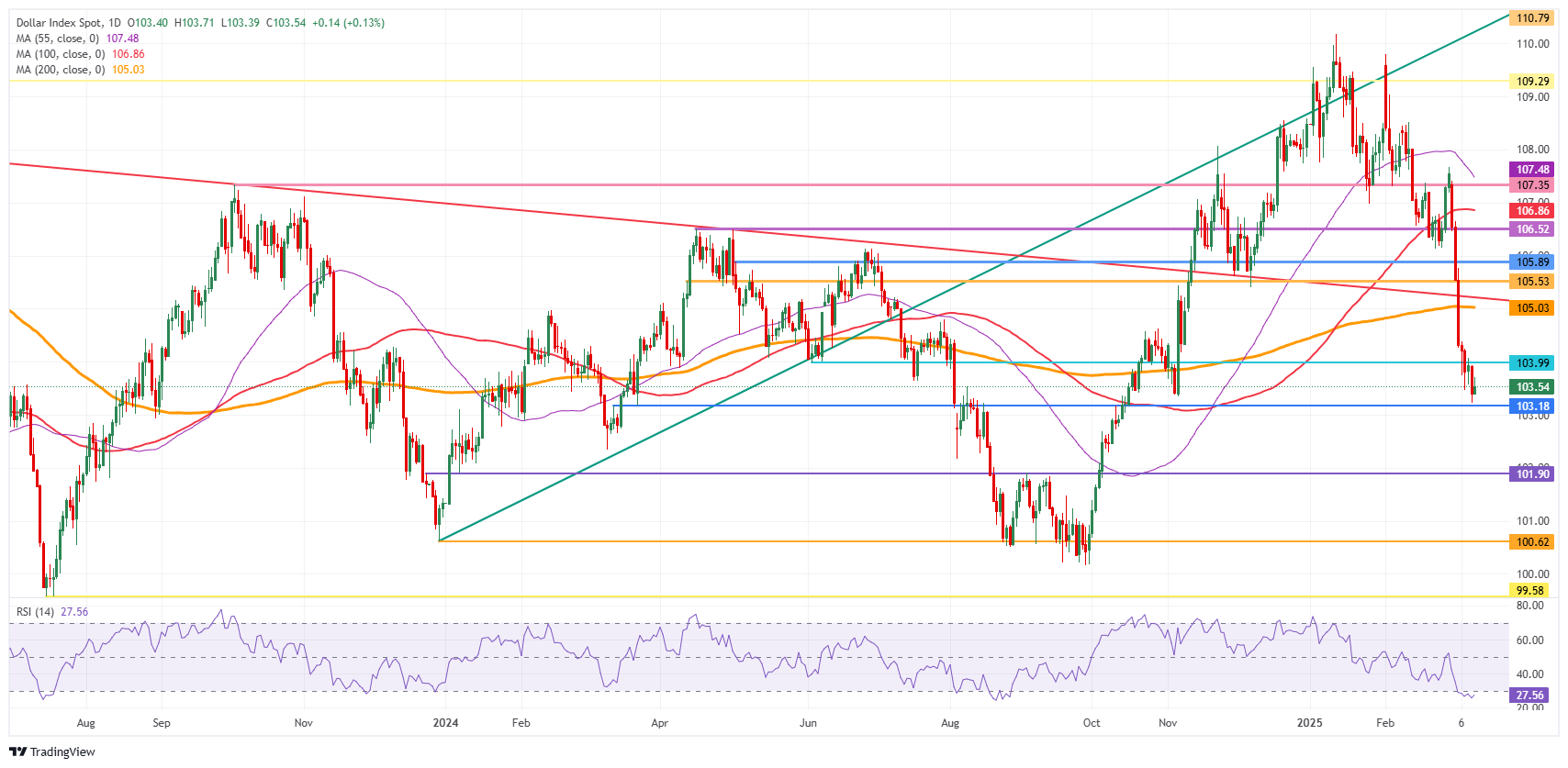 - Key support: 103.00 – A decline in US Treasury yields could push DXY toward 101.90 if markets further adjust long-term USD positions.