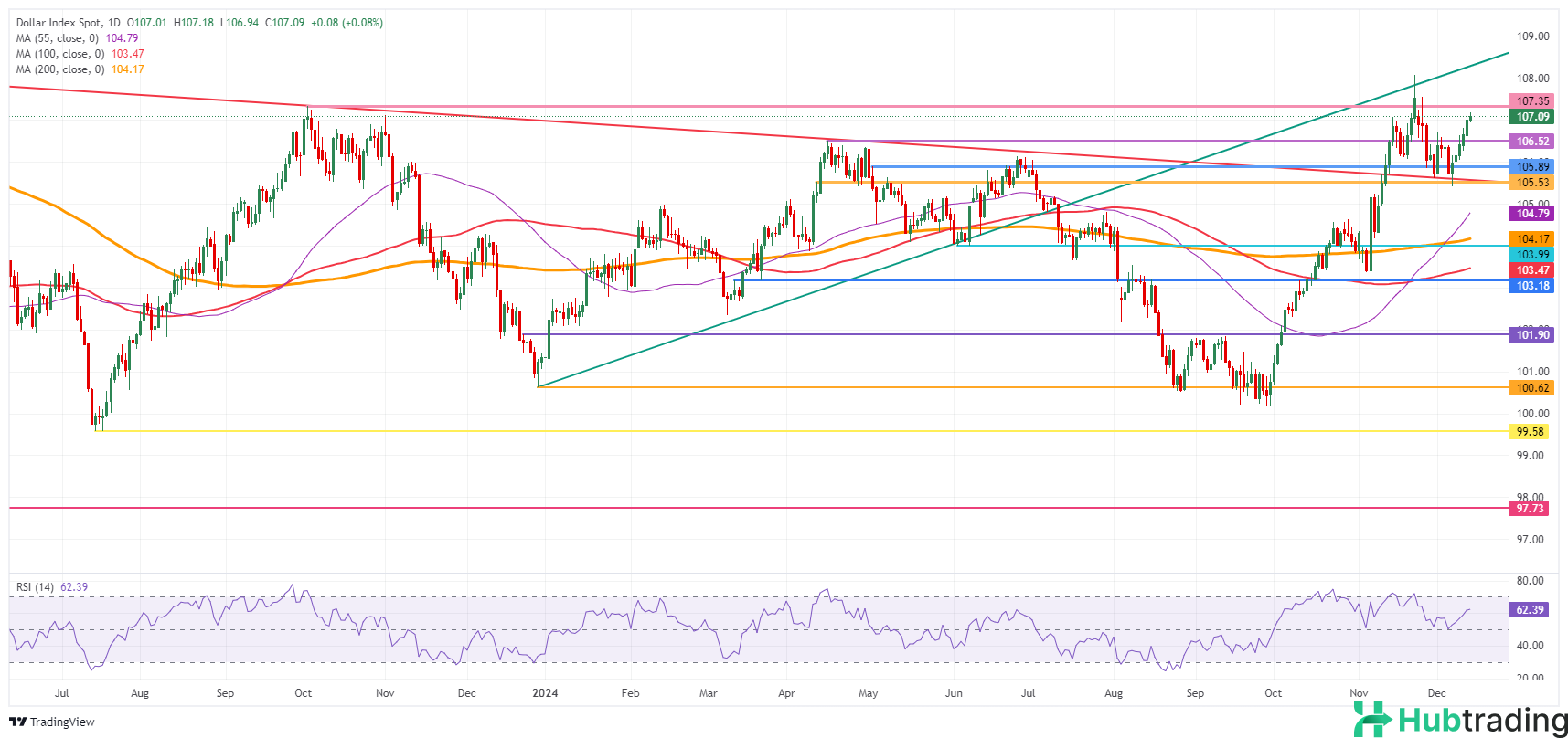 - The US Dollar Index (DXY) trades above 107.00 for the first time since November 26.