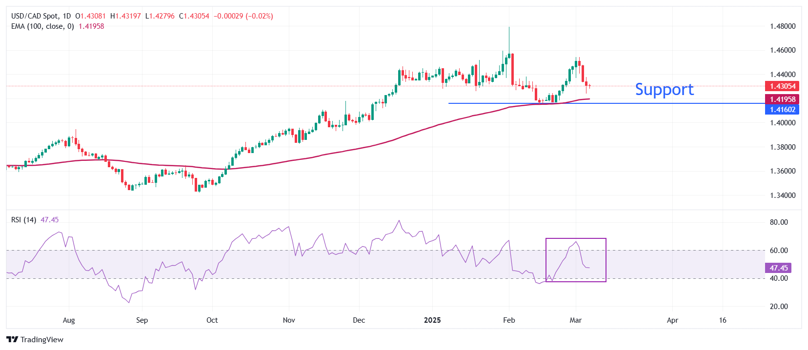 Technically, USD/CAD trades within Thursday’s range, staying above the 100-period EMA at 1.4200, signaling a bullish trend. The 14-period RSI fluctuates between 40.00-60.00, indicating a neutral outlook. A break above the February 9 high of 1.4380 could push the pair toward 1.4400 and the key resistance at 1.4500. Conversely, a drop below the February 14 low of 1.4151 may lead to further declines toward the December 9 low of 1.4094 and December 6 low of 1.4020.