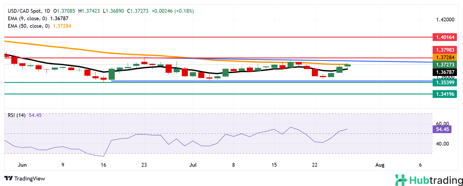 Immediate support is seen at the 50-day EMA, currently around 1.3728.