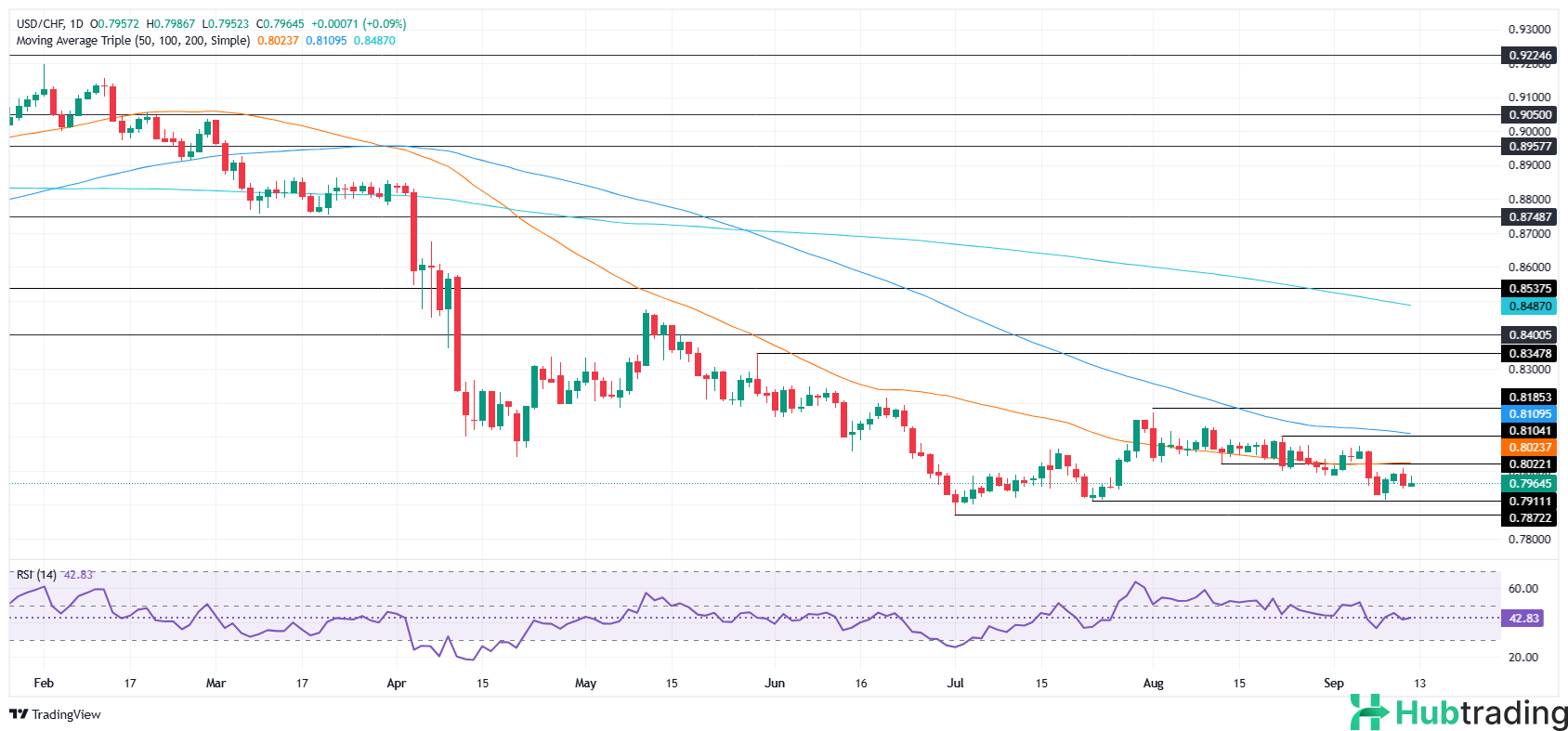 On the upside, a move above 0.8000 would open the door toward 0.8025, with further resistance at the 100-day SMA at 0.8109. On the downside, a break below 0.7900 could pave the way for a retest of the yearly low at 0.7872.