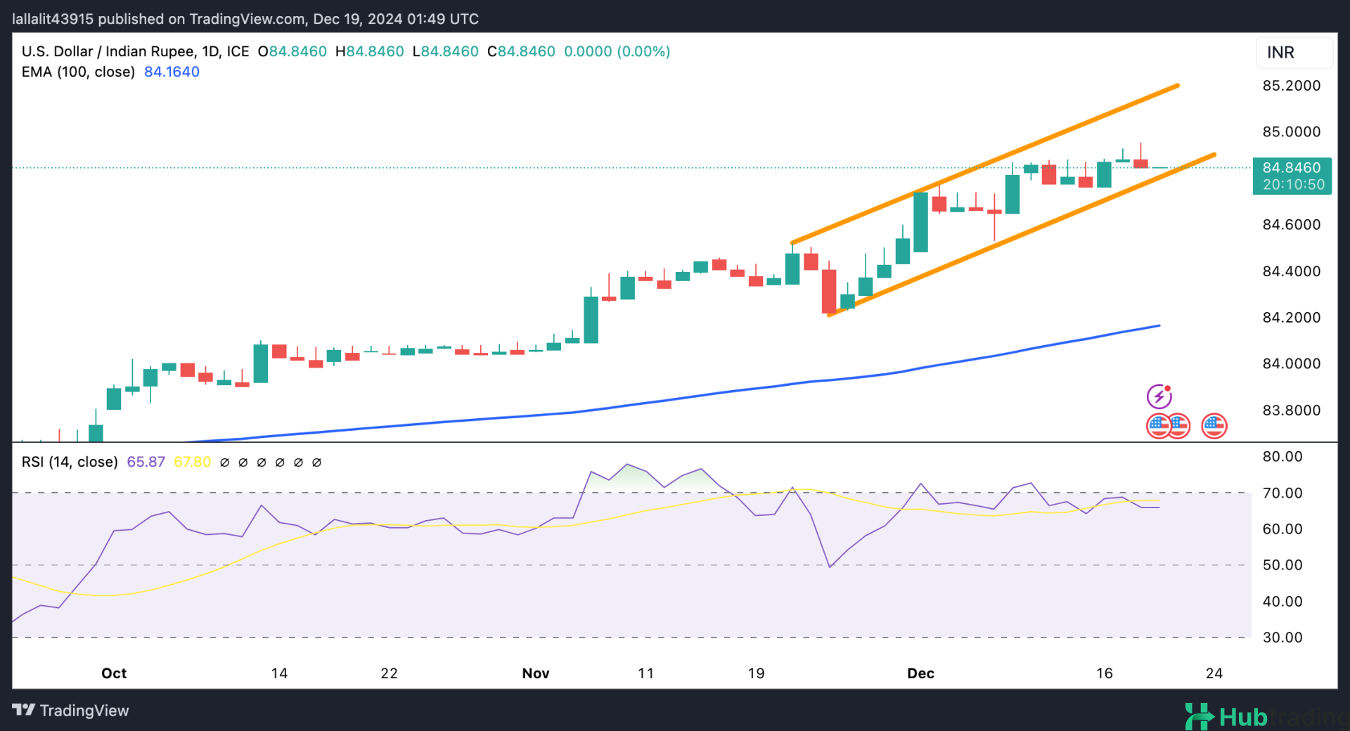 The Indian Rupee (INR) edged closer to a fresh record low on Thursday, weighed down by renewed US Dollar (USD) demand from importers and foreign banks. The Federal Reserve’s decision to lower its key interest rate by 25 basis points at its December meeting, coupled with projections of a slower pace of rate cuts in 2025, further strengthened the USD against the INR.