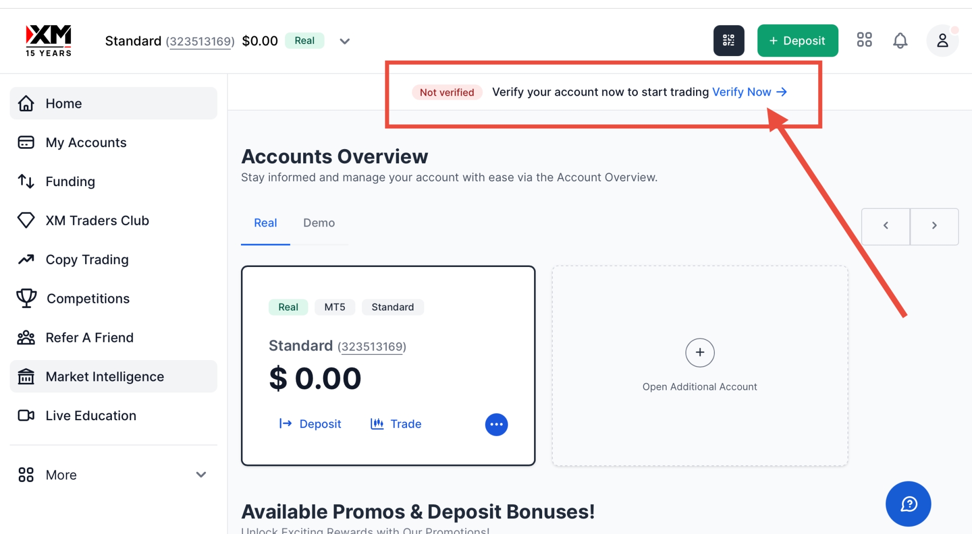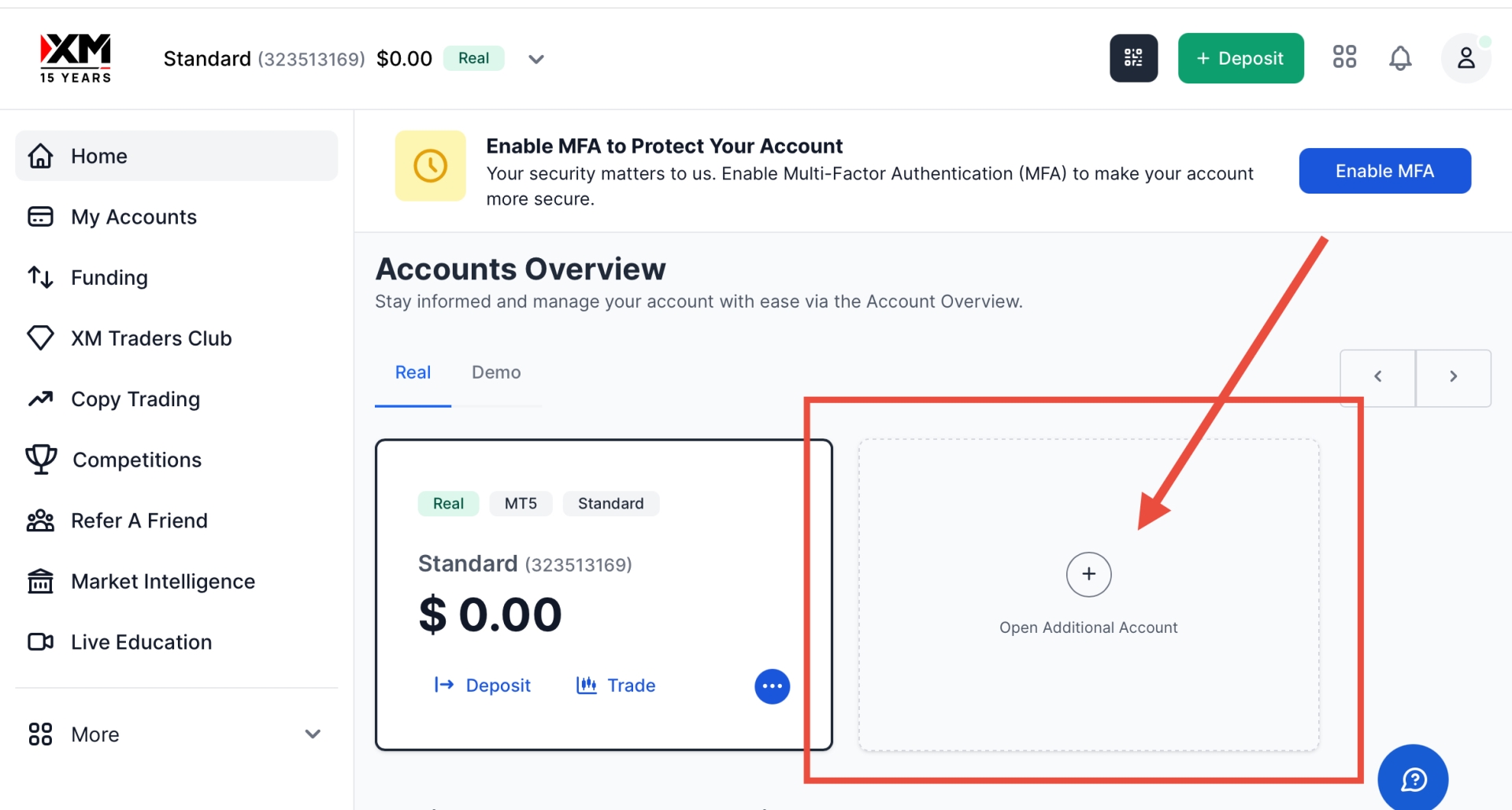 Step 4: Deposit funds into your newly created account, or open a new trading account ID (MT4/MT5).