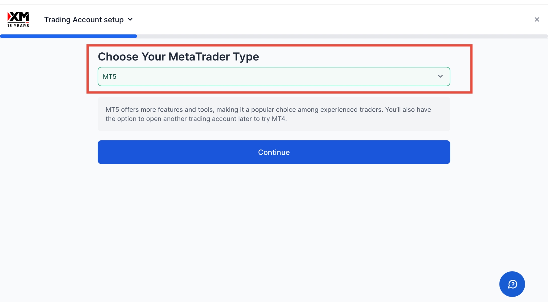 Step 3: Select your preferred trading platform (MT4 or MT5) and choose the account type you want to open.