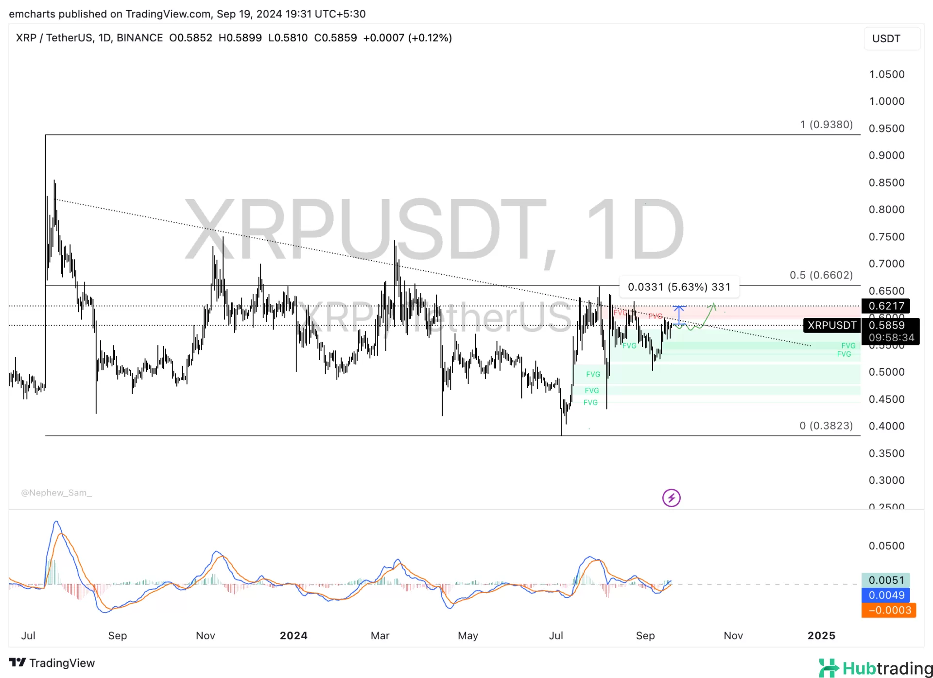 - XRP is trading at $0.5879, inching closer to the key psychological level of $0.60.